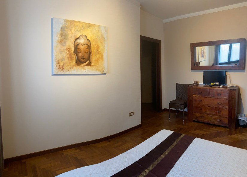 Un petit goût d’exotisme dans cette chambre qui porte bien son nom avec ses meubles indonésiens en bois exotique. Un vrai voyage dans le voyage pour des nuits sans frontières et un réveil…… en Sardaigne.